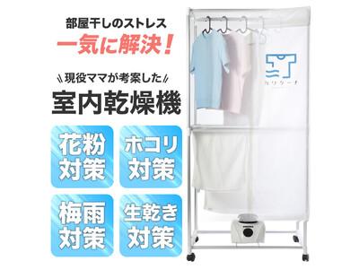 そんな想いから、日本中のお母さん達の「洗濯物を干して乾かす」大変さを解消したいと、 主婦目線で新製品の開発に取り組み、生まれた室内用小型乾燥機「カワクーナ」