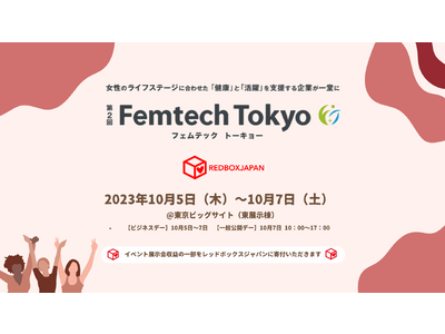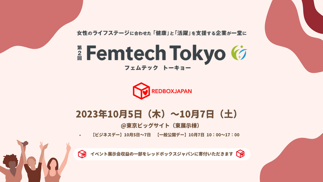 2023年10月5日(木)~7日(土)に、東京ビッグサイトで第2回「Femtech Tokyo」(フェム テック・トーキョー)を開催します。イベント展示会収益金の一部をレッドボックスジャパンに寄付いただきます。