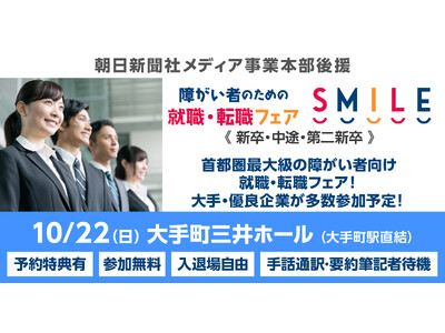 首都圏最大級の障がい者向け就職・転職フェア「SMILE」が10/22(日)東京・大手町にて開催!