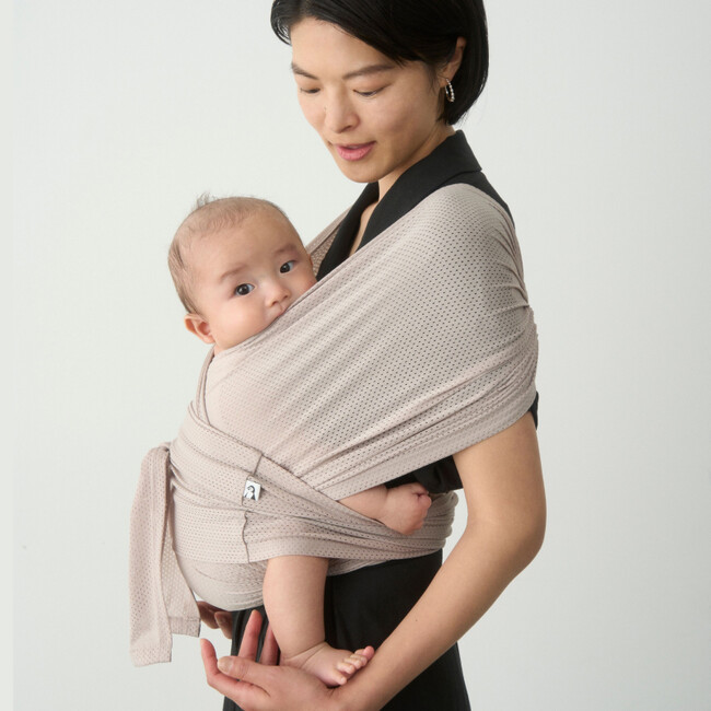 独自の技術で開発した抱っこ紐専用生地で、伸縮性と復元力に優れたやわらかい低刺激素材です。