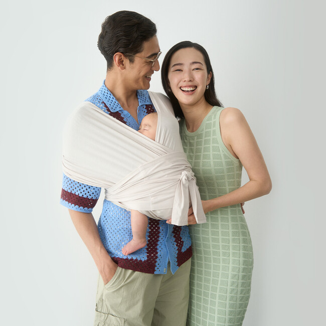 Tシャツのようにさっと着るだけで簡単で快適に赤ちゃんを抱っこできます。