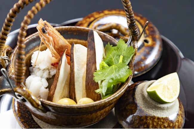 みちばの「命の出汁」が旬の食材の旨味を引き立て、香りを華ひらかせます。コース序盤に提供される土瓶蒸しで、秋限定の懐石コースへの期待を高めていただく一押しのお料理です。