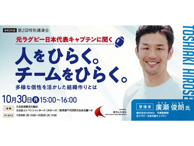 公益社団法人 東京広告協会は、元ラグビー代表キャプテン・廣瀬俊朗氏による「組織づくりとリーダーシップ」をテーマにした講演会を2023年10月30日(月)に都内で開催することを決定し、現在申込受付です。