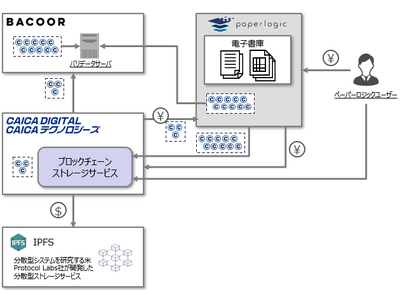 具体的にはペーパーロジック社が提供するクラウドサービス 『paperlogic(R)』に、当社サービスをご活用いただくことで、paperlogic(R)のユーザーは自身の電子帳簿データを、ブロックチェーン技術を利用した分散ストレージに保存し、より安全かつ堅牢な保存/管理が可能になります。