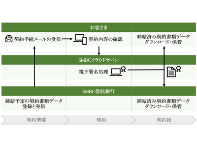 株式会社SMBC信託銀行(代表取締役社長:西崎 龍司、以下「SMBC信託銀行」)は、本日より、SMBC クラウドサイン株式会社(代表取締役社長:三嶋 英城、以下「SMBCCS」)が提供するクラウド型電子契約サービス『SMBCクラウドサイン』を導入し、住宅ローンの新規契約において電子契約手続を開始いたします。