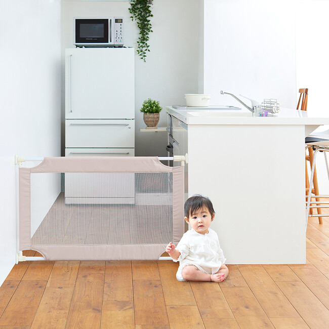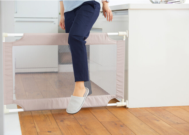 料理や掃除などの家事をしながらでもゲートの向こう側にいる赤ちゃんを確認できる安心のメッシュ素材です。