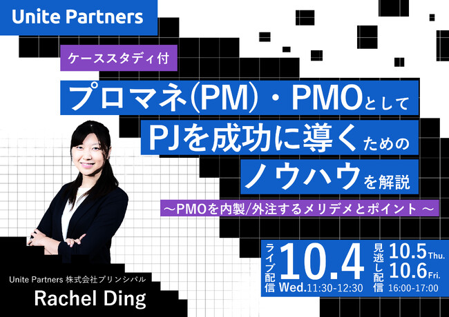 企業の変革パートナーを目指すブティック型コンサルティングファームのUnite Partners株式会社(本社:東京都、代表取締役:小林大輝)は、2023年10月4日(水)に、「システム開発におけるプロマネ(PM)を外注するメリット/デメリットとは?」と題してセミナーを開催します。