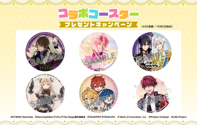 「TVアニメ『UniteUp!』」をはじめとする6作品がコラボしたコースターキャンペーンの絵柄もお披露目します♪