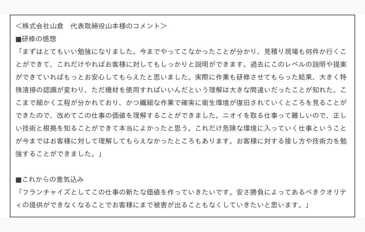 募集開始後、当社の考えやビジョンに共感いただいた株式会社山倉と加盟店契約を締結をする運びとなり、