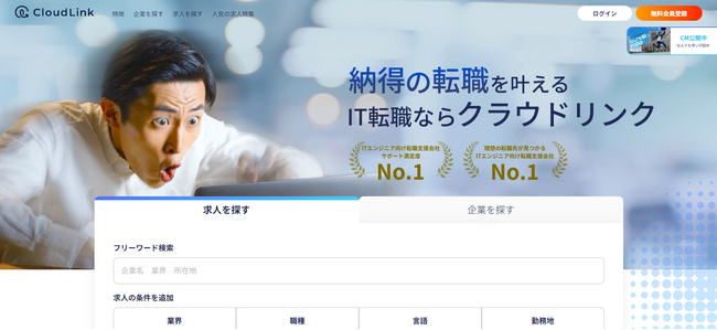 IT専門の転職エージェント、株式会社CloudLink (本社:大阪市中央区、代表取締役社長:梅野 且貴、以下クラウドリンク)は初のwebCM放映を開始しましたことをお知らせします。