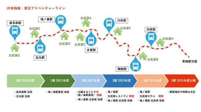 現在は、プロジェクトの第一弾の舞台であるJR青梅線沿線の駅とその近隣の集落を基本ユニットとして、その地域ならではの特産品・体験をコンテンツ化し、お客さまに提供することで、地域を“まるごと”楽しんでもらえる新たな滞在型観光を造成・提供しています。