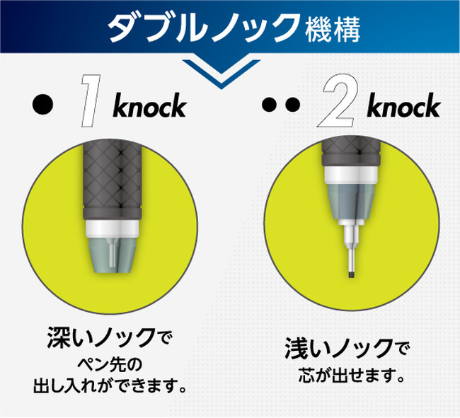 ~持ち運び時にペン先を傷めないダブルノック機構を搭載~