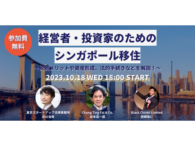 東京スタートアップ法律事務所は、現在シンガポールでご活躍されている坂本真一郎弁護士と西郷隆仁様(独立系資産運用会社Black Clover Limited勤務)をメインスピーカーにお迎えし、オンラインセミナーを開催する運びとなりました。