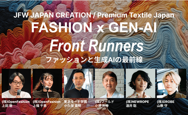 そのような中で10月31日(火)に東京国際フォーラム(有楽町)で開催する本セミナーは、“ファッション×生成AI”という分野で最前線で活躍するゲストが一堂に会し、トークセッションを実施します。実際に生成AIを活用したテキスタイルデザインから、ファッションに関わる企業や教育機関での活用事例など、ファッション業界における生成AIの“今”と“未来”を探ります。
