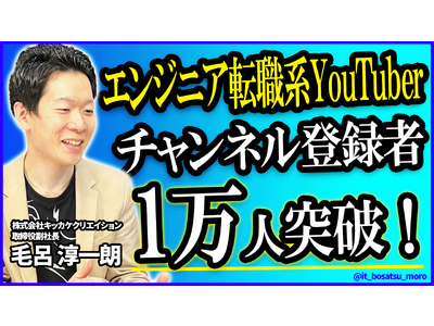 「IT人材のライフスタイル支援を通じて日本のデジタルシフトを加速する株式会社キッカケクリエイション(本社:東京都渋谷区、代表取締役社長:川島 我生斗/以下、当社)」は、2023年10月10日(火)に、当社が運営するYouTubeチャンネル「IT菩薩モロー【ITエンジニア転職・キャリア発信系YouTuber】」の登録者数1万人となりましたことをお知らせいたします。