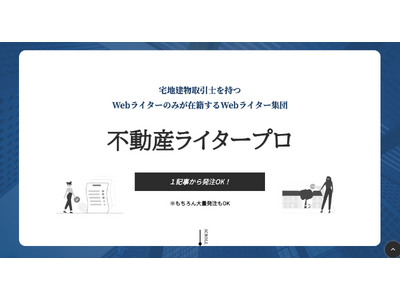 株式会社Webライタープロ(本社:東京都目黒区、代表:藤倉大地)は不動産ジャンル特化の記事制作サービス「不動産ライタープロ」(https://webwriter-pro.co.jp/realestate/)を開始いたしましたので、お知らせします。