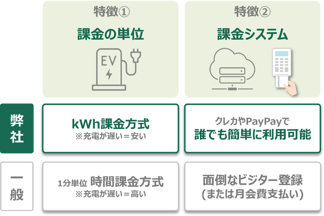 ※日本にEV充電は、時間単位での課金となっているため、充電に時間のかかる出力の低い充電器のほうが料金が高くなるといった逆転現象が起こってしまっています。