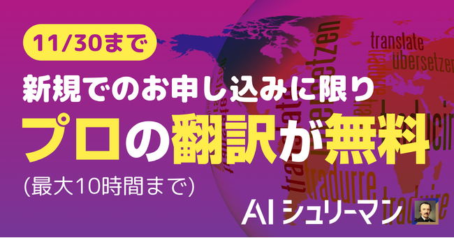 本キャンペーンは、2023年11月末までのお申し込み分を対象に、1言語10時間分のチェックサービスを提供するものです。詳細な品質確認を行うことで、AI翻訳の精度をさらに高め、お客様のビジネスに貢献することを目指します。