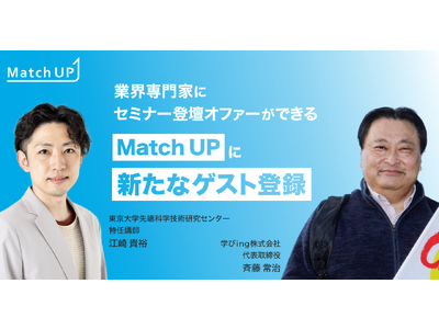 株式会社イノベーション(東証グロース 証券コード3970)のグループ会社である、株式会社Innovation X Solutions(本社:東京都渋谷区、代表取締役社長:遠藤俊一、以下「Innovation X Solutions」)は、業界専門家に企業が主催するセミナー/イベントへの登壇オファーができるマッチングサイト「Match UP」に、東京大学先端科学技術研究センター特任講師 江崎 貴裕氏、学びing株式会社 代表取締役 斉藤 常治氏など、豪華専門家が新たにゲスト登録されたことをお知らせします。