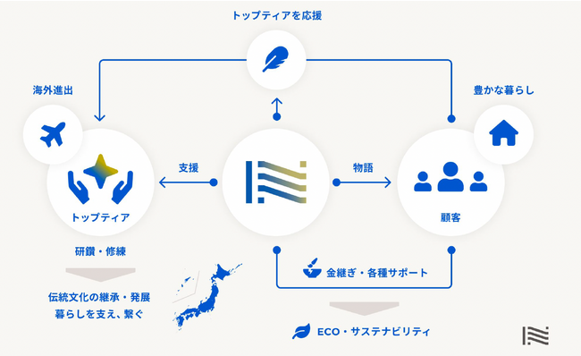 長い時間を経て育み、継承されてきた日本の伝統工芸文化は今、少子高齢化や東京一極集中などの理由により消滅の危機に晒されています。当社はこの文化を維持・継承することで日本の誇りを守ると同時に、新たなエコシステムを形成し、国内外でさらなる発展を遂げられないかと事業に挑戦しています。