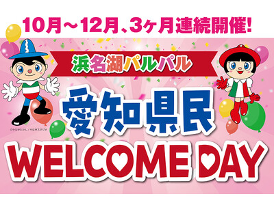 遠鉄観光開発株式会社(本社:浜松市西区、社長:森下忠康)が運営する遊園地「浜名湖パルパル」(所在地:浜松市西区館山寺町1891)では、「10 月~12 月、3 か月連続開催!愛知県民は入園無料・フリーパスも特別価格 愛知県民WELCOME DAY」を実施いたします。