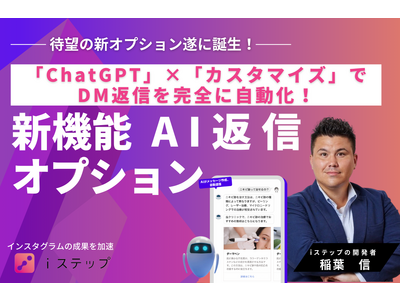 AI自動返信は、Chat GPTの公式APIを利用したAIチャットボットサービスで、Instagram上で事業者ごとにカスタマイズされたAIが動作するチャットボットサービスであり、iステップのオプションプランとして提供いたします。 AI自動返信は、単なる自動応答だけでなく、ユーザーごとにパーソナライズされた自動コミュニケーションが実現できます。
