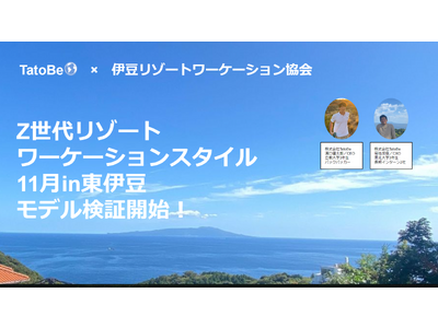 株式会社TatoBeは2023年11月から東伊豆にて閉鎖保養施設の再生を目指す伊豆リゾートワーケーション協会と連携し、Z世代リゾートワーケーションスタイルの確立を目指したモデル検証を開始することをお知らせいたします。