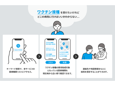 第一弾として、東京都の帯状疱疹ワクチン任意接種において一部費用助成が受けられる医療機関一覧の提供を開始し、順次、対象エリアや対象疾患を広げていく予定です。