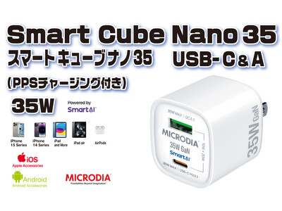 iphone15、ipad充電に最適、MICRODIA SmartCube Nano 35は35WのPD GaNウォールチャージャーで、そのコンパクトなサイズと高度な安全性が魅力
