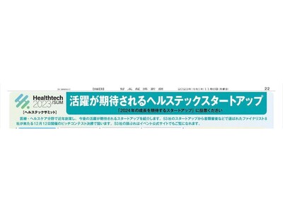 現在、日本経済新聞社とメドピア株式会社の共同開催にて、12月11日、12日に予定されているヘルスケアサミット2023との連動企画にて、「今後の活躍が期待されるヘルスケアスタートアップ」53社の1社として掲載いただきました。