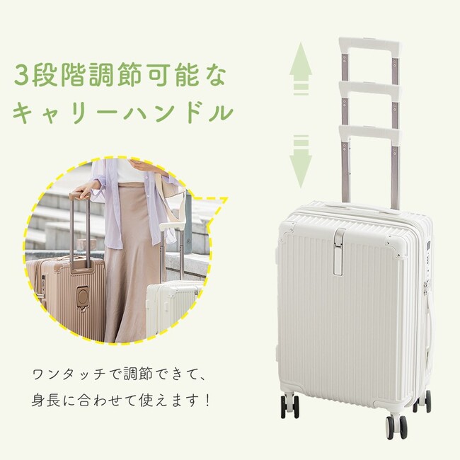 使用感の細部にまでこだわったスーツケース。旅行先などで荷物が多くても、移動が楽々でストレスフリー。是非使って実感してみてください。
