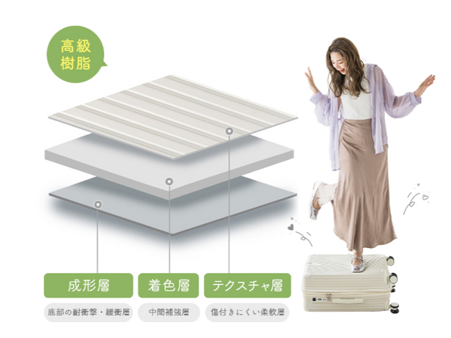 を使用しており、耐衝撃性に優れています。荷物を預けるのも安心です。