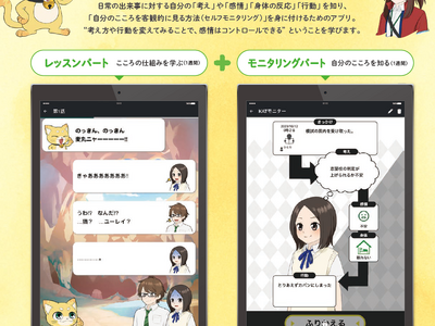 ※1: CBTアプリとは・・・CBTはCognitive Behavioral Therapyの略で、日本語では認知行動療法と呼ばれます。さまざまな精神疾患の治療に活用されている心理療法で、専門家の指導のもと自分自身で思考や行動の癖を把握し、自分の認知・行動パターンを整えていくことでストレスを減らしていくメソッドとなります。