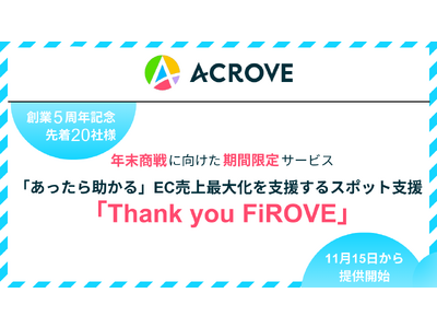 日頃ご利用いただいておりますお客様へ感謝のしるしとして還元できるよう、創業記念日の11月15日(水)から「Thank you FiROVE」を期間限定、先着20社様に提供いたします。
