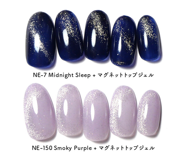 この冬は「ネイビー(NE-7 Midnight Sleep)」や「ライトパープル(NE-150 Smoky Purple)」に、マグネットアレンジを組み合わせるのがおすすめ!