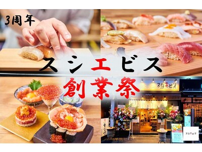 【スシエビス恵比寿本店創業3周年記念、スシエビス3店舗にて創業祭を開催!】総額300万円分超え!?お客様全員に金券プレゼントやドリンク・名物料理をご奉仕価格でご提供!11月20日(月)~期間限定開催。
