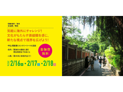 行程:2月16日夜の便で、福岡空港出発、台湾大学の訪問、現地高校生などとの交流や異文化体験。学生起業家との交流。