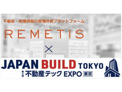 「不動産テックEXPO」へ出展いたします。紺&オレンジ色のブースでは、RESTARが開発・提供する不動産・地理情報の管理分析プラットフォーム「REMETIS(レメティス)」の実際の操作を体験いただくことが可能です。