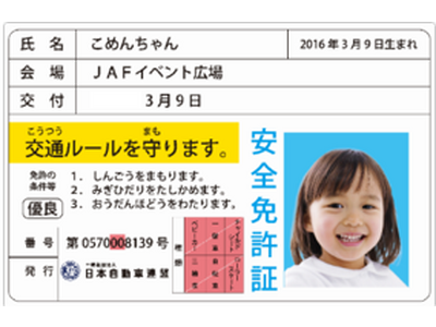 本イベントでは、JAFブースによるシートベルトコンビンサーや子ども安全免許証発行などの交通安全コンテンツ体験、自動車販売店ブースによるクルマの展示などをおこないます。各ブースをスタンプラリー形式で巡っていただき、完了した方に抽選でJAFオリジナルグッズ等の賞品をプレゼントいたします。