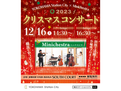 YOKOHAMA Station City運営協議会(会長:東日本旅客鉄道株式会社 執行役員 横浜支社長: 宮田 久嗣)は、2023年12月16日(土)に、JR横浜駅 中央南・南改札内 SOUTH COURTにて「クリスマスコンサート」を実施いたします。