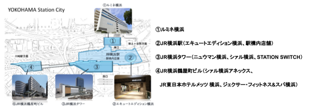東日本旅客鉄道(株)、(株)ルミネ、(株)横浜ステーシヨンビル、(株)JR東日本ビルディング、日本ホテル(株)、(株)JR東日本クロスステーション、JR東日本スポーツ(株)、(株)ジェイアール東日本企画、(株)JR東日本スマートロジスティクス (計 9社)