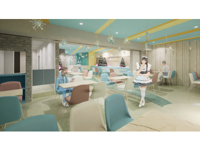 店内は美しい雪模様や星をイメージした可愛い雰囲気に作り上げました。カフェタイムではソファー席でゆったり過ごしながらメイドキャストによるライブステージを楽しむことができ、20:00以降はお酒を飲みながらお楽しみいただける非日常メイドエンターテインメント体験をご提供いたします。