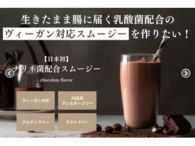 株式会社DOYAKAI(本社所在地:東京都豊島区)は、食の制限のない社会を実現したいという想いのもと、28品目アレルギーフリー、ラクトフリー、グルテンフリー、さらにヒト由来の乳酸菌でヴィーガンにも対応(※1)したスムージーを作りました。2023年11月28日より、クラウドファンディングを開始いたしますこと、お知らせいたします。