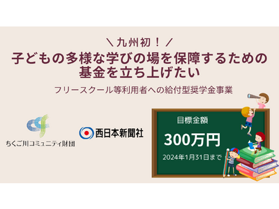 一般財団法人ちくご川コミュニティ財団(福岡県久留米市)は、学校に行けない・行かない子ども(不登校の子ども)の学びを応援する取り組み「子どもの多様な学びの場を保障するための基金」プロジェクト(以下「多様な学び基金プロジェクト」)を始めます。