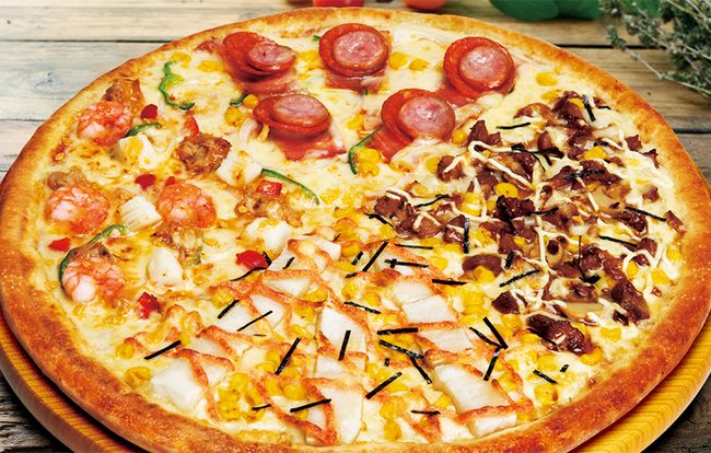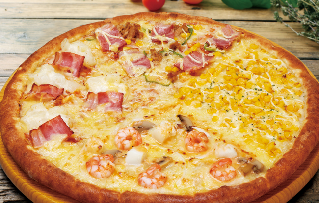 スーパーミックス・照焼チキングルメ・博多明太子とおもちのピザ・シーフードスペシャル