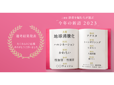 辞書のトップメーカーである株式会社三省堂(本社:東京都千代田区、代表取締役社長:瀧本多加志)は、2023年11月30日(木)に「三省堂 辞書を編む人が選ぶ『今年の新語2023』選考発表会」を実施し、2023年を代表・象徴する新語ベスト10を発表いたしました。