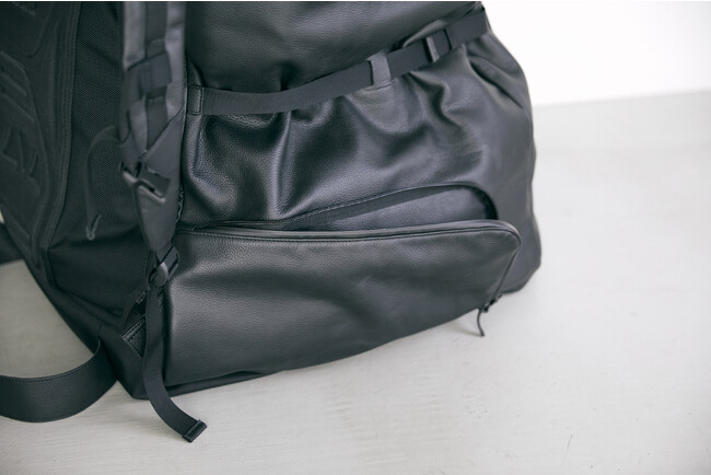 防水レザーを贅沢に使用。この防水レザーは、皮の表面に撥水加工をするのではなく、