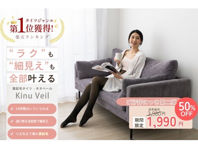 楽天ランキング「タイツジャンル」1位を獲得した※、つま先まで裏起毛が覆うフェイクタイツ「Kinu Veil」(キヌベール)が遂に11月30日(木)より一般発売開始いたしました