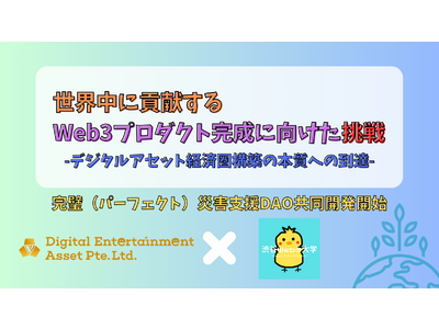 渋谷Web3大学を運営する上場企業からスタートアップ企業までブランディングの力で顧客企業のビジョンの達成に貢献をするシマウマ合同会社(本社:東京都渋谷区、社長 兼 CEO:北村 元、以下、シマウマ )と、シンガポールを拠点にグローバルでGameFiプラットフォーム事業を展開するDigital Entertainment Asset Pte.Ltd.(本社:シンガポール、Founder&CEO:吉田 直人、Founder&Co-CEO:山田 耕三、以下、DEA)は、社会課題解決型DAO×GameFiの開発で、デジタルアセットの経済圏構築の本質への到達、Web3プロダクトで世界中に貢献するデファクトスタンダードとなることを目指し、「完璧(パーフェクト)災害支援DAO」の共同開発を開始したことをお知らせします。
