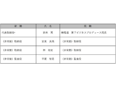 株式会社電通ランウェイ(本社:東京都港区、代表取締役社長執行役員 河勝 重之)は、取締役会において、2024年度の役員体制につき内定いたしましたので、以下の通りお知らせいたします。今後とも更なるご愛顧を賜りますよう、よろしくお願い申し上げます。